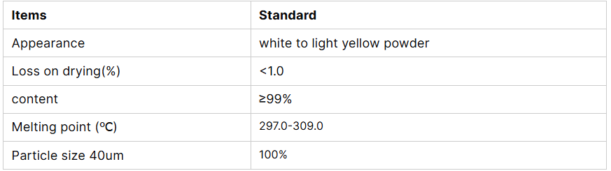 Stoffet er et hvidt krystallinsk fast stof, opløseligt i vand og nogle organiske opløsningsmidler. Det har relativt høj termisk og kemisk stabilitet.
